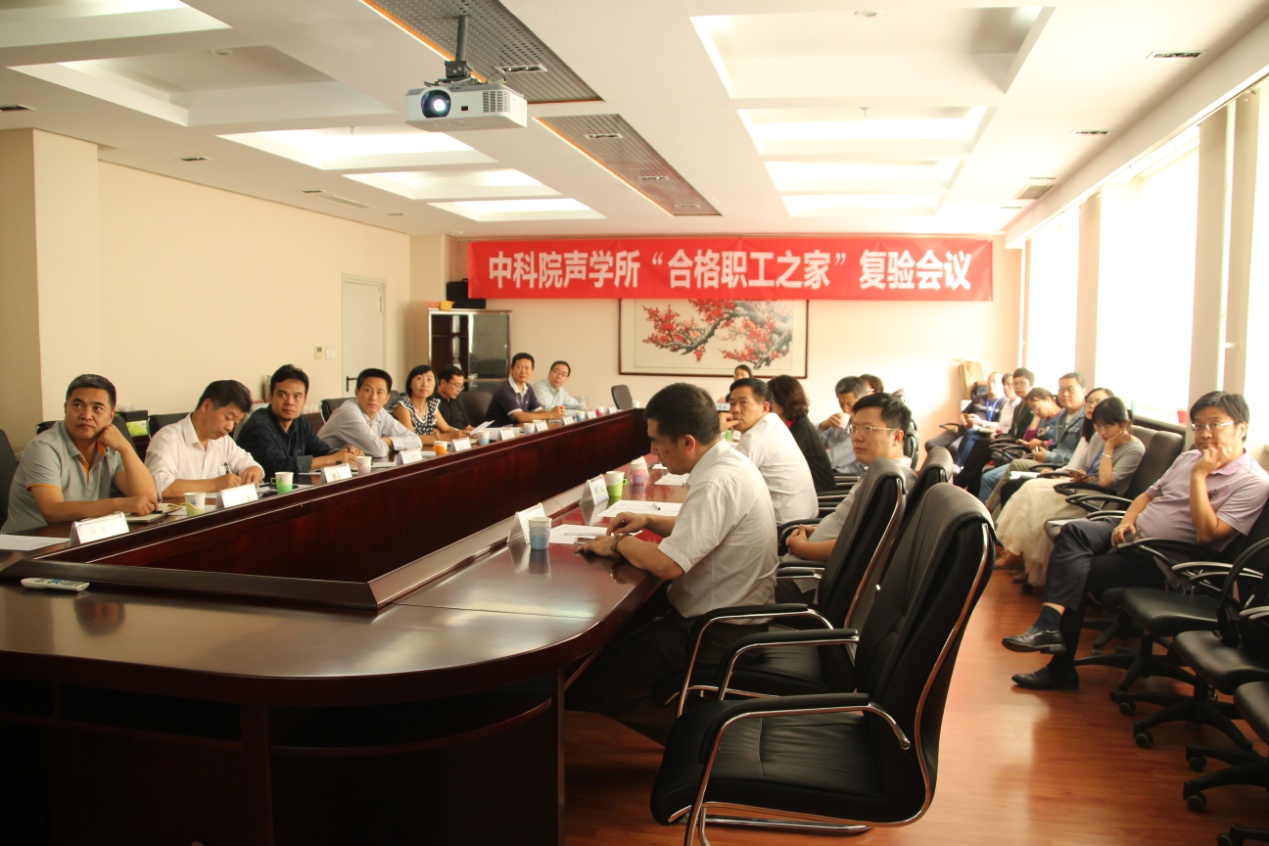 9月26日下午,院工会常务副主席、院直属机关党委副书记刘京红率领院工会“合格职工之家”复验考评组对声学所“合格职工之家”建设工作进行了复验。声学所党委书记张春华,党委副书记、纪委书记李浩然,所工会、职代会主席林伟军,以及所工会委员和分工会主席参加了复验会议。