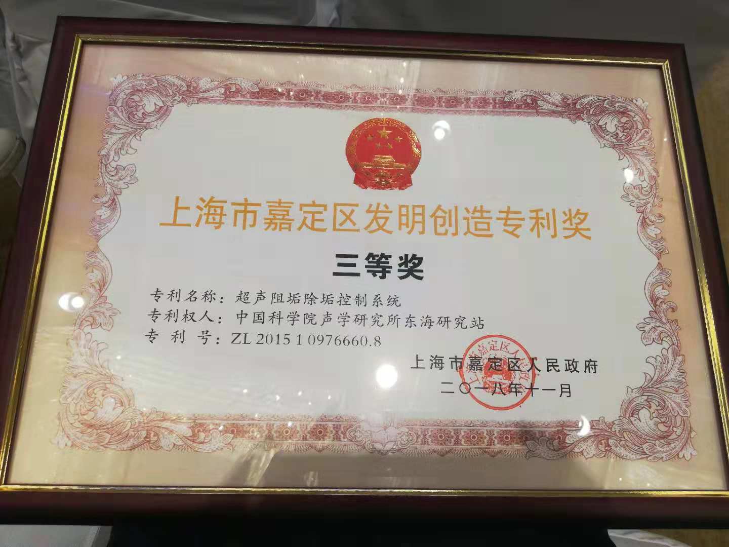 会议表彰了一批荣获嘉定区科学技术奖的个人和项目。其中,东海站科技委主任胡长青研究员荣获嘉定区科技领军人才奖,东海站工业超声研究室申报的“超声波阻垢除垢控制系统”发明专利获嘉定区发明创造专利奖三等奖。
