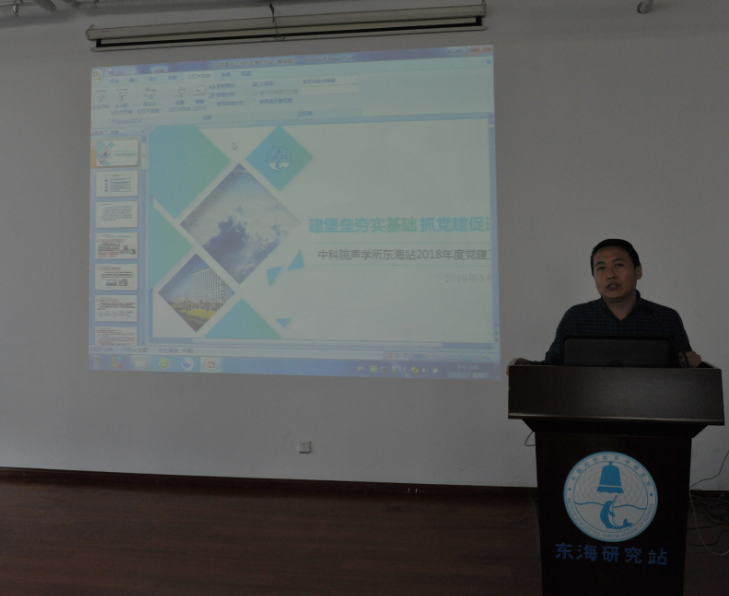 随后许伟杰向会议人员汇报了2018年度东海站工作总结:2018年,东海站党政领导班子认真履行全面从严治党,以党的十九大及十九届历次全会精神为指引,深入推进实践创新,在声学所的正确领导下,在全站职工的共同努力下,在项目争取、科研生产进展、人才队伍建设、平台和体系建设及创新文化建设等方面都取得了较好的成绩,全面完成了年初设定的工作目标,各方面工作呈现良好发展势头。同时分析了东海站目前存在的问题和面临的挑战,指出了东海站2019年工作主题和工作重点。