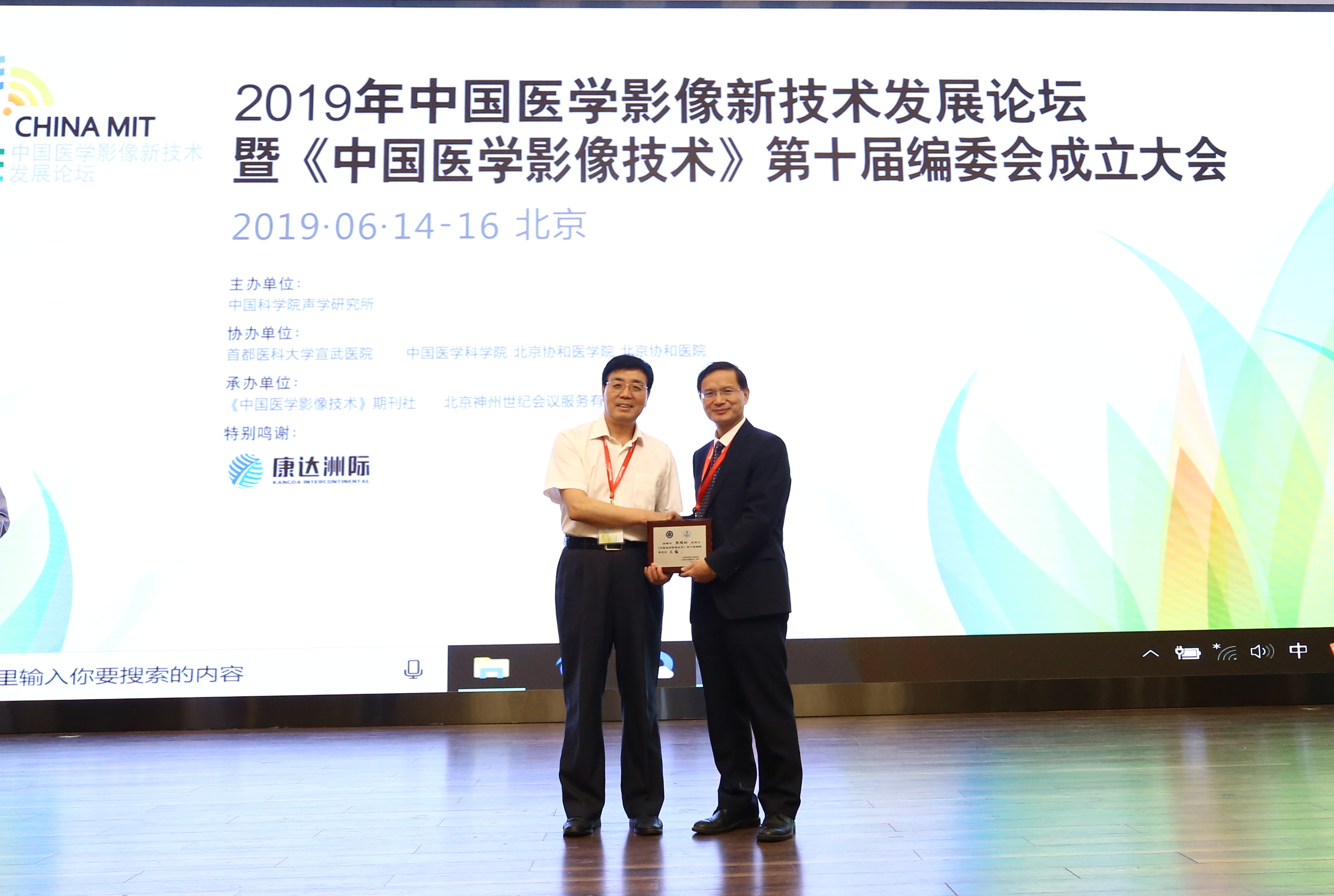 2019年中国医学影像新技术发展论坛暨《中国医学影像技术》第十届编委会成立大会于6月14日至16日在北京召开。主办单位中国科学院声学研究所所长王小民研究员、首都医科大学宣武医院李坤成教授、北京协和医院李建初教授出席论坛并致辞。第十届编委会委员和来自20多个省、自治区、直辖市的参会代表,共计300余人参加了此次论坛。论坛开幕式由《中国医学影像技术》期刊社社长郑春见主持。