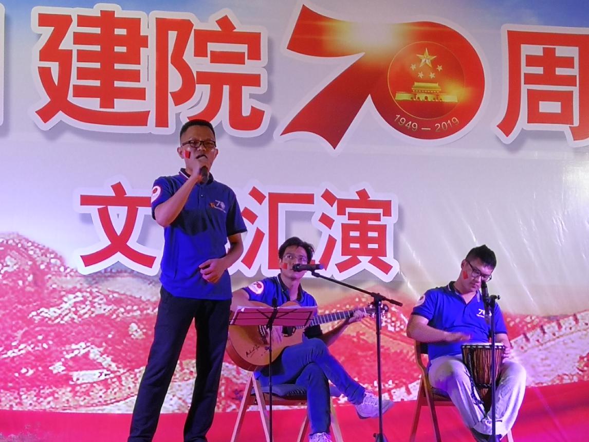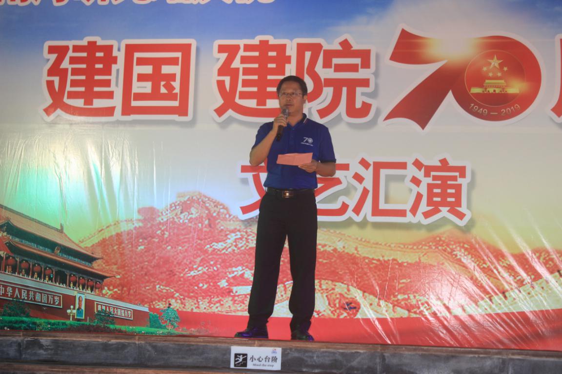 演出开始前,南海研究站甘维明站长代表领导班子致辞。甘站长深情地回顾了新中国成立以来取得的骄人成绩,同时也回顾了南海研究站扎根海南60余载,克服重重困难,不忘初心、牢记使命,为我国水声事业的发展做出的重要贡献。在中国科学院、声学所、海南省及各协作单位的大力支持下,南海研究站各项事业呈现出越来越蓬勃的发展态势,开启了南海研究站声学事业的新征程。在新的发展起点上,甘站长号召新一代南站人,要继承和发扬我们的优良传统,在国家实施创新驱动发展战略的背景下,改革进取,踏实肯干,勇于担当,以更加强烈的使命感和责任感,为国家南海战略做出更大贡献。70载岁月峥嵘、70载昂首挺立,祖国江山万里红,让我们共同祝愿祖国繁荣富强,祝愿中科院取得更辉煌的成绩。