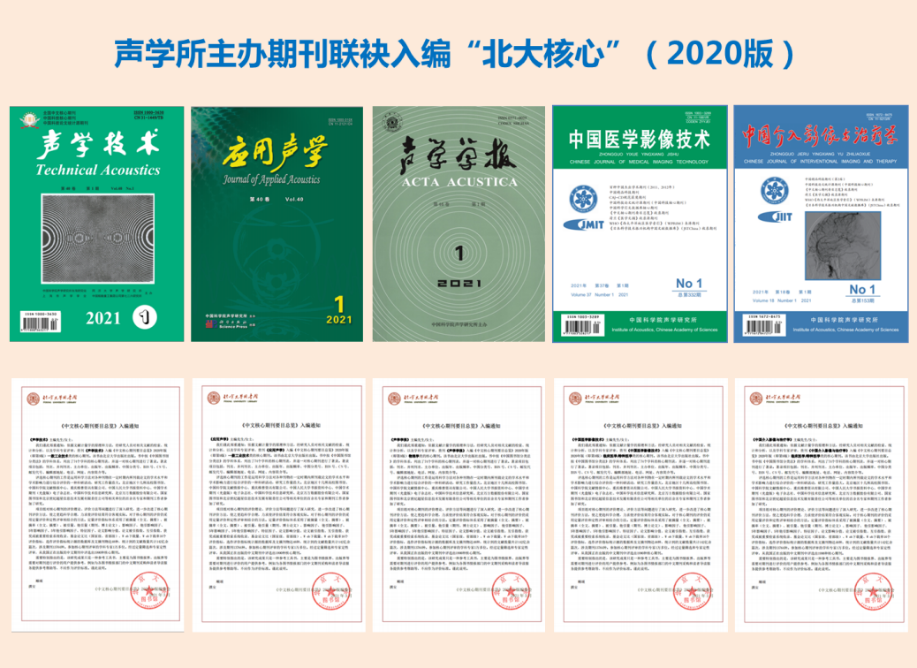 近期,据《中文核心期刊要目总览》2020年版编委会通知,声学所主办的《声学学报》《应用声学》《声学技术》《中国医学影像技术》及《中国介入影像与治疗学》5种科技期刊联袂入编《中文核心期刊要目总览》2020年版(即第九版)。
