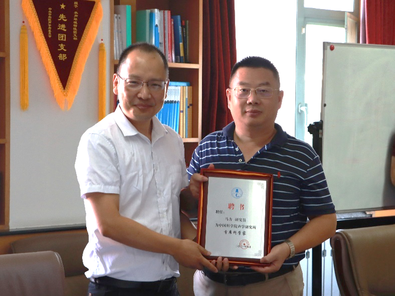 会上,倪宏宣读了《中国科学院声学研究所关于“首席科学家”岗位聘任的通知》,聘任马力、王秀明、王劲林、黄海宁、颜永红研究员(按姓氏笔画排序)为声学所“首席科学家”。