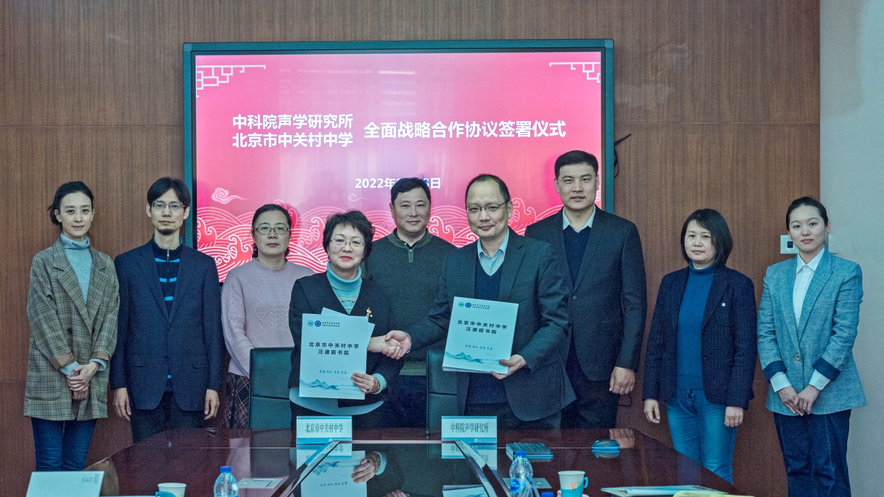 1月18日下午,声学所与中关村中学签署全面战略合作协议仪式在中关村中学举行。李风华所长与中关村中学苏纾校长签署协议并举行了会谈。仪式由中关村中学副校长杨亮主持。