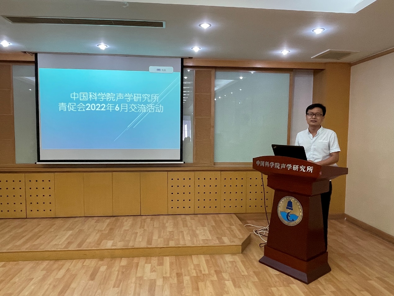 2022年6月24日下午,声学所青促会交流活动在德昭楼218会议室举行,本次活动由水下环境信息感知实验室承办,肖东副研究员主持。同时,为加强青促会小组与所内青年科技人员交流,特邀苏林研究员、海外引进青年学者李玉冰、刘拓、石同阳作学术报告。
