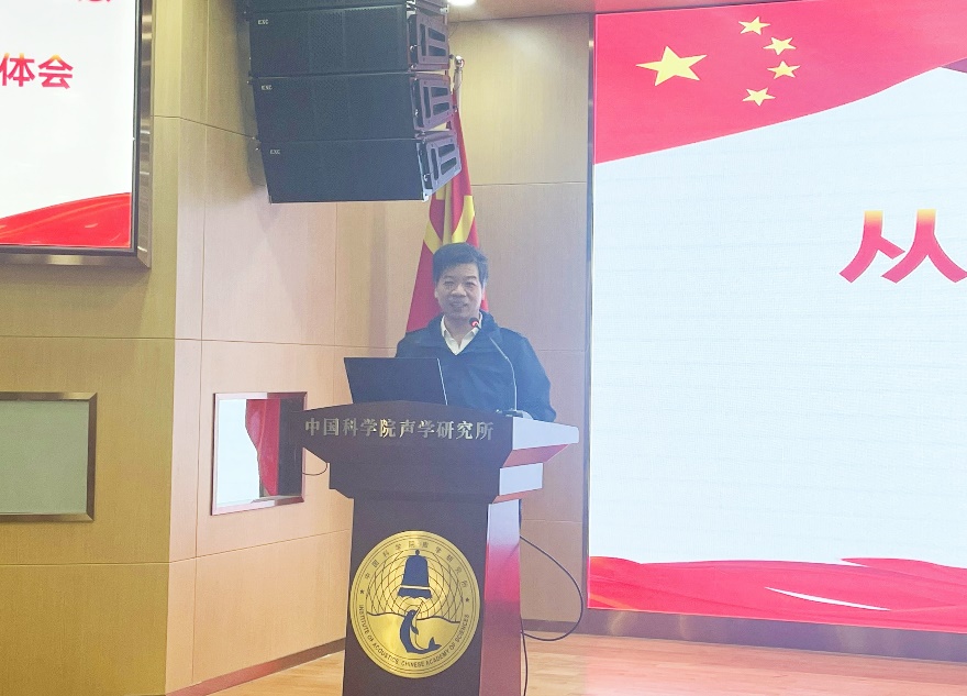 学术委员会主任郭良浩受邀就科学家精神作报告,在报告中分享了对科研工作的心得体会。他指出,作为从事声学领域的科研人员,要选择有前景的研究领域,尤其要培养提出问题的能力,以问题为导向发挥创造性想象,以兴趣为引领,持续努力做好准备,最终抓住机遇实现突破。他指出,科学成就离不开精神支撑,他以共和国勋章获得者、中国核潜艇之父黄旭华老一辈科学家埋头科研、甘心做沉默的砥柱献身科学事业,勉励新职工要以榜样为引领,汲取精神力量,传承和弘扬科学家精神,争做堪当科技强国重任的时代新人。