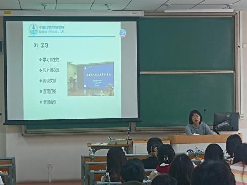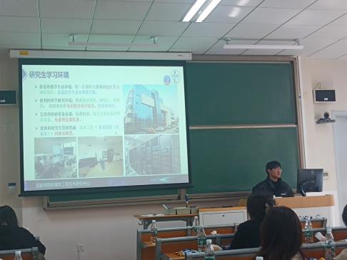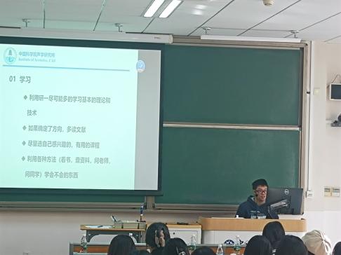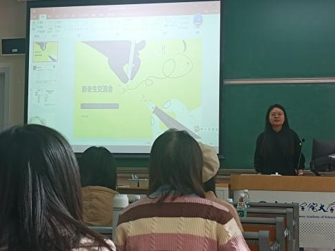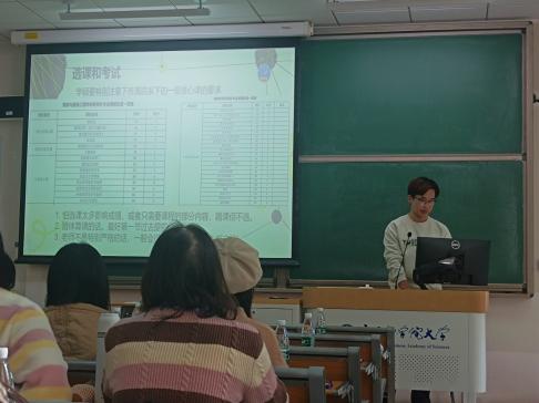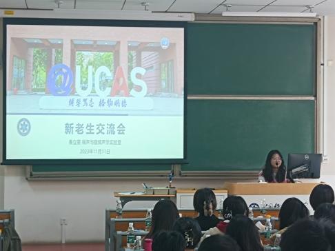 上午九点半,新老生学习经验交流会在雁栖湖校区教1-213举行,高年级优秀学生代表杨凯博、寇旭、李雪滢、郭靖、秦立雯、陈帆杰、张景铭、段德烜等高年级学生代表分别上台,向70多名2023级研究生分享有关集中教学学习、选课、科研、生活相关的经验。