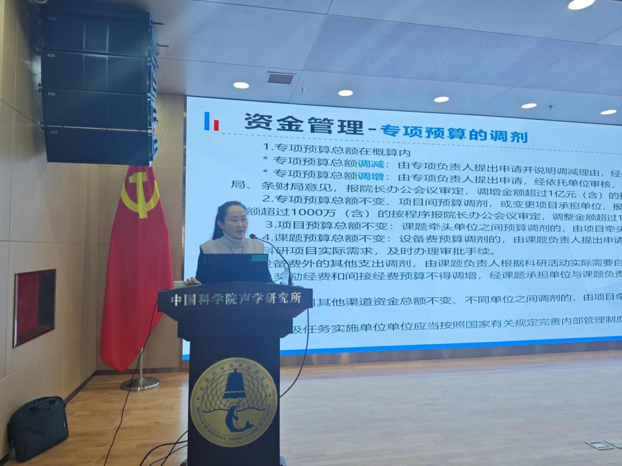 为帮助科研人员更好的掌握中国科学院先导专项的经费管理要求,进一步规范先导项目经费的使用,提高先导项目经费的使用效益,2024年3月11日下午,声学所举办了先导项目经费管理培训,邀请我院资深财务专家陈音高级会计师作培训报告。培训由财务管理部处长何晓梅主持。共计40余人参加培训。