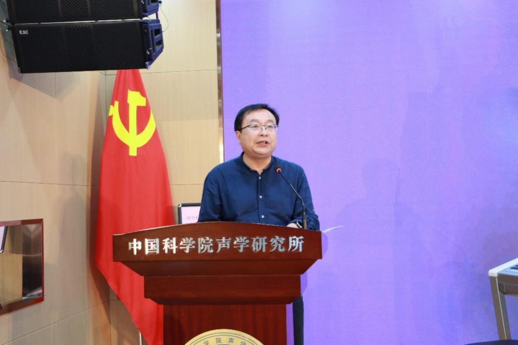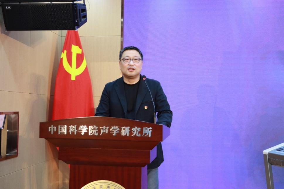 杨军首先对中国音乐学院各位来宾的到来表示欢迎。他指出,声学所与音乐学院的交流合作历久弥新,同样诞生于1964年,同样栉风沐雨一甲子,同样传承着共和国的红色基因。他回忆了声学所首任所长汪德昭先生与中国音乐学院建院元老李慧年先生的伉俪情深,致敬了他们在国家危机关头毅然参加革命、为我国的解放事业和科学教育事业作出的重大贡献,强调了今天我们传承和弘扬他们科学家精神的重要意义。他期待双方以此为契机,加强科学与艺术的融合,强化声学与音乐的交流,做好“声”与“音”的文章,为全面推进强国建设和民族复兴伟业贡献力量。