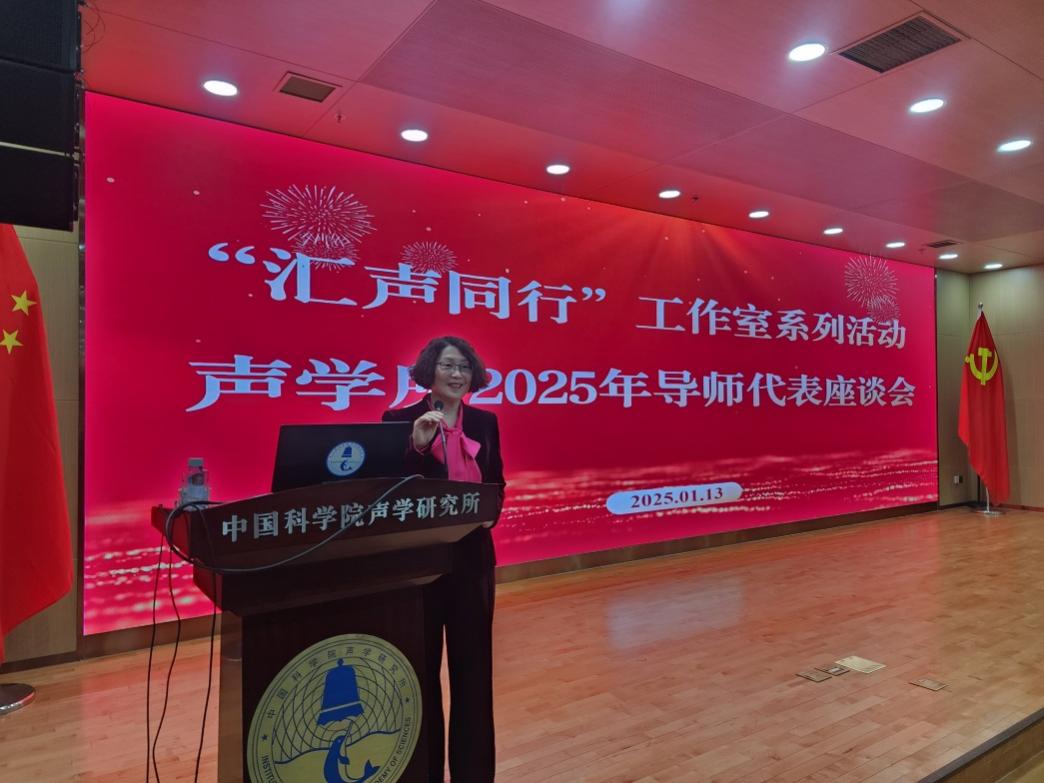 2025年1月13日下午,“汇声同行”工作室系列活动之声学研究所2025年导师代表座谈会在新科研楼1503会议室举行。人力资源部主任张莉、各研究单元导师代表、辅导员和研究生教育管理干部30多人参加了会议,会议由人力资源部副主任、研究生部主任李辉主持。