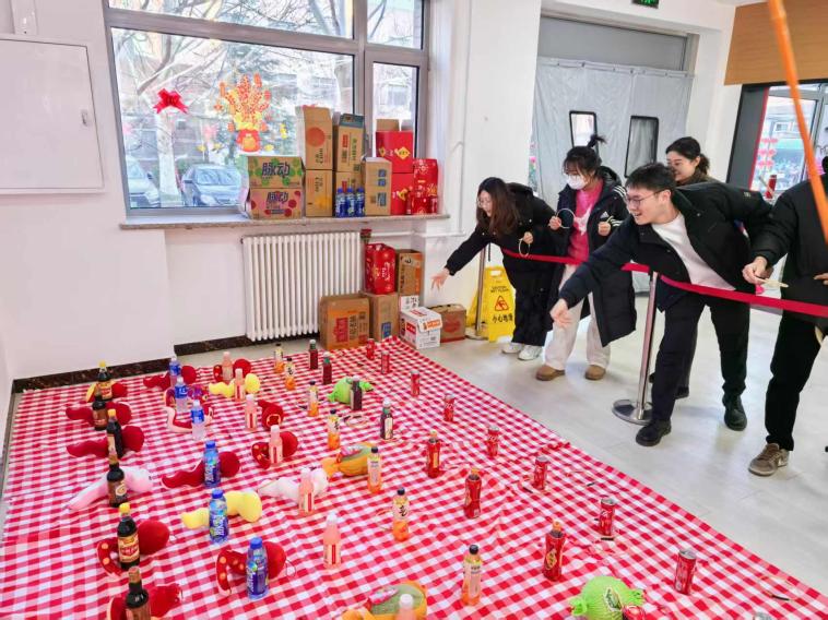 自助餐厅精心准备了多种糕点、小吃和各地特色美食。此外,还举办了套圈活动,并准备了水果、饮料、蛇年特色玩偶、调味品等丰富的礼品。大家热情高涨,反响热烈,活动现场气氛温馨而欢乐。