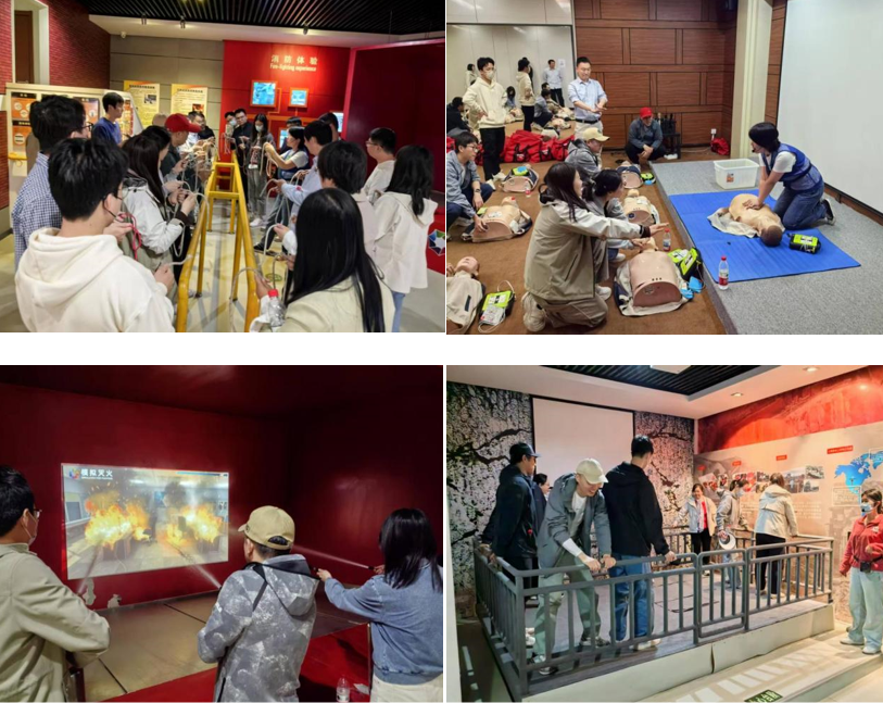 在参观学习中,大家先后体验了国家安全、科技安全、消防安全等五大领域的八个应急主题场馆,同时在安全讲解员的指导下进行了消防器材、防烟面罩、逃生结绳、心肺复苏等使用技巧练习,初步掌握了专业知识和技能。