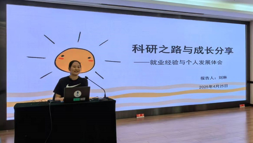 2022届毕业生刘琳(现就职于中国科学院声学研究所)作《科研之路与成长分享——就业经验与个人发展体会》报告,从科研岗位求职准备、职业能力提升等方面为同学们提供了务实建议。