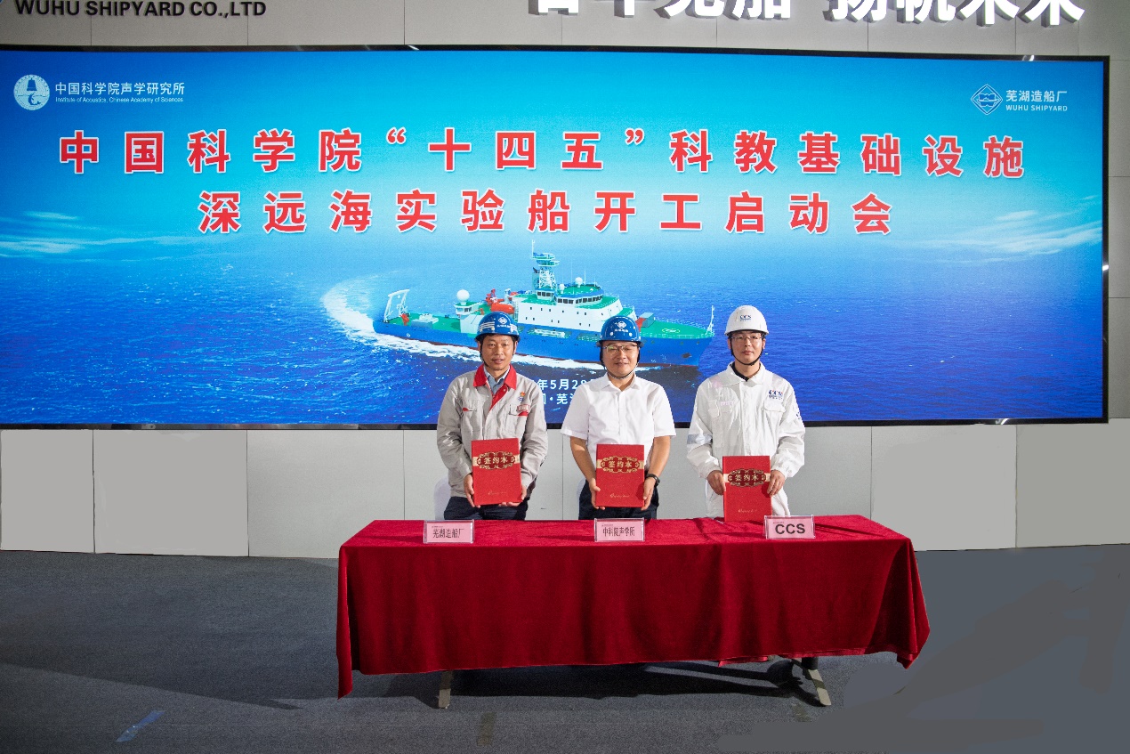 2025年5月28日,中国科学院“十四五”科教基础设施深远海实验船开工启动会在芜湖造船厂举行。中国科学院财务与资产管理局、中国科学院声学研究所、中国船级社、芜湖造船厂、中国船舶集团第七〇八研究所、中国船级社实业公司等单位领导参加了启动会,共同见证项目正式开工建造,并就高质量推进建造工作进行研讨。