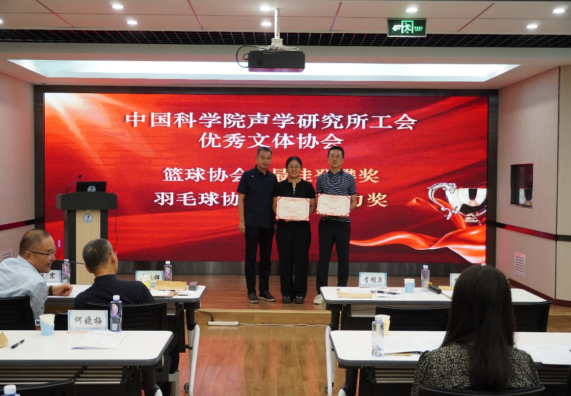 副所长李明庚为优秀文体协会颁发奖励证书
