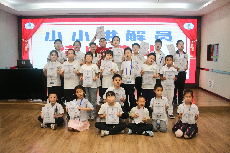 下午举行结业典礼,通过考核的学员现场领取“小小讲解员”结业证书,家长代表为本次培训班的研究生志愿者颁发荣誉证书。
