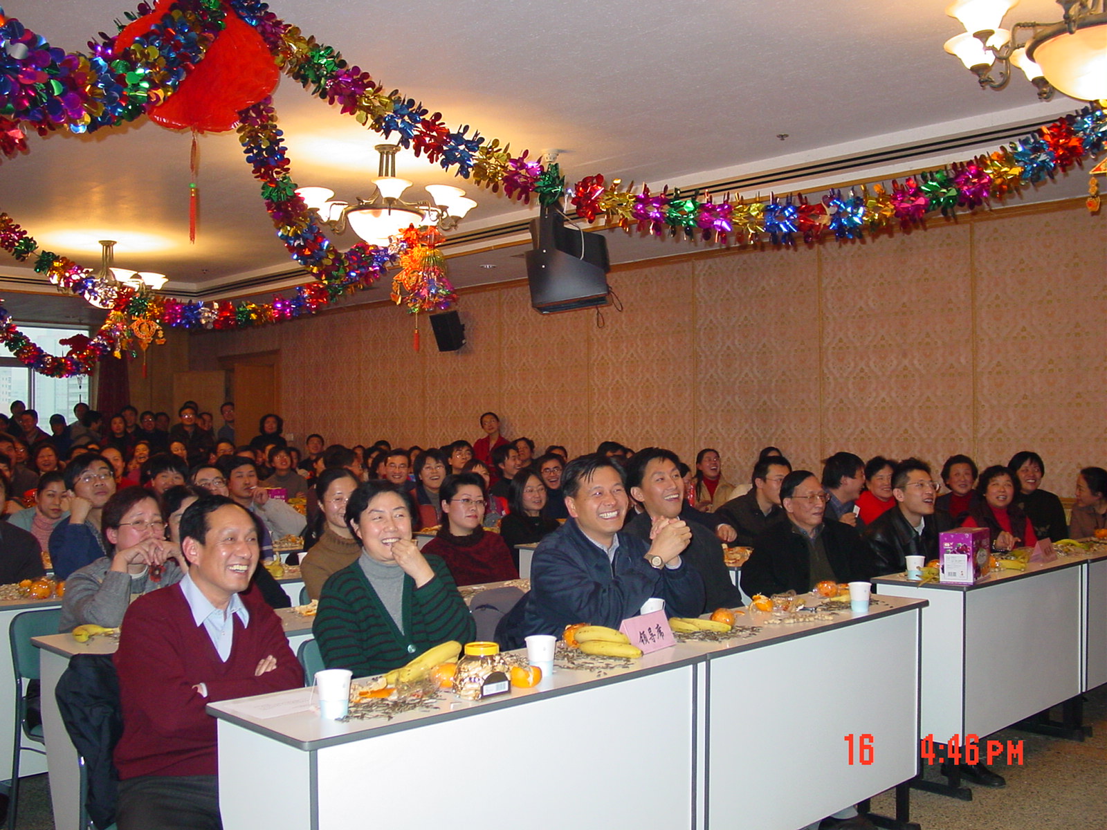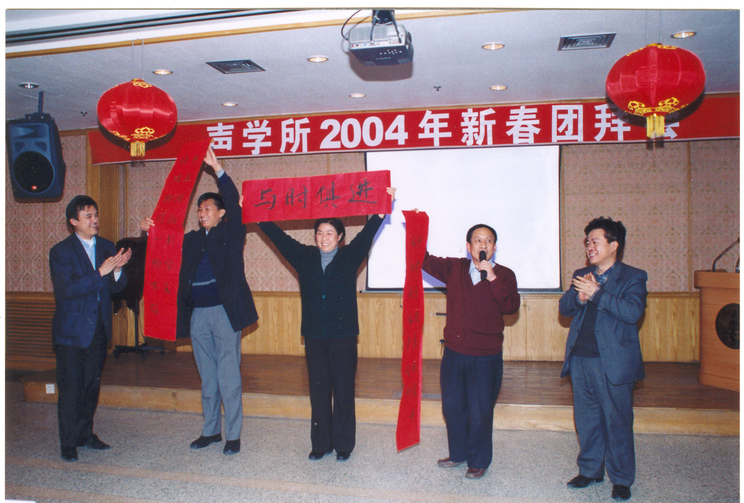 随后,所领导给大家献上了一幅春联,上联——“科学管理真抓实干永做国家声学所”,下联——“顽强拚搏一丝不苟争当国际科学家”,横批——“与时俱进”。这幅春联巧妙地把声学所的所训、治所方针、组织目标和声学所2003年工作主题结合起来,形象地反映了声学所领导和全体同志在新的一年里锐意进取、不断创新,勇攀高峰的决心和豪气。
