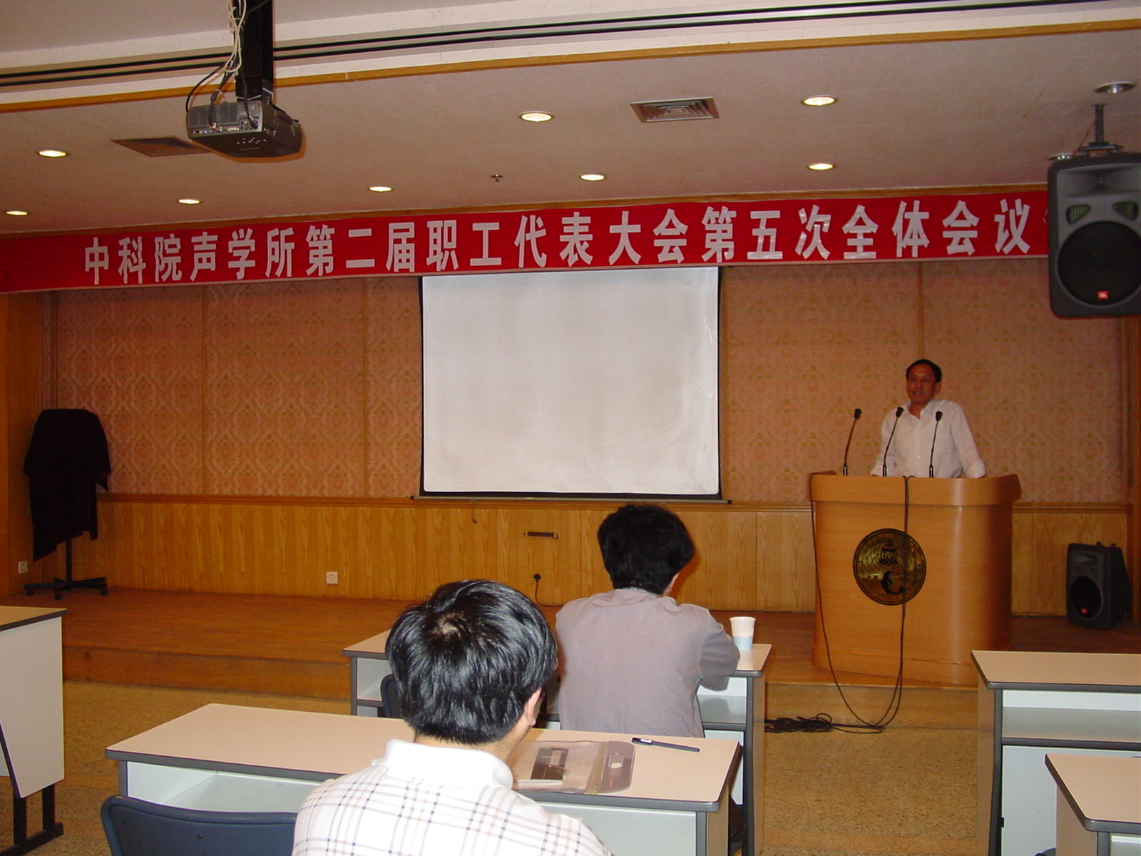 2004年5月10日,声学所召开了第二届职代会暨第五届工会第五次全体会议。所职工代表和所党政领导班子成员、工会经费审查委员会成员等特邀代表近40人参加了会议。