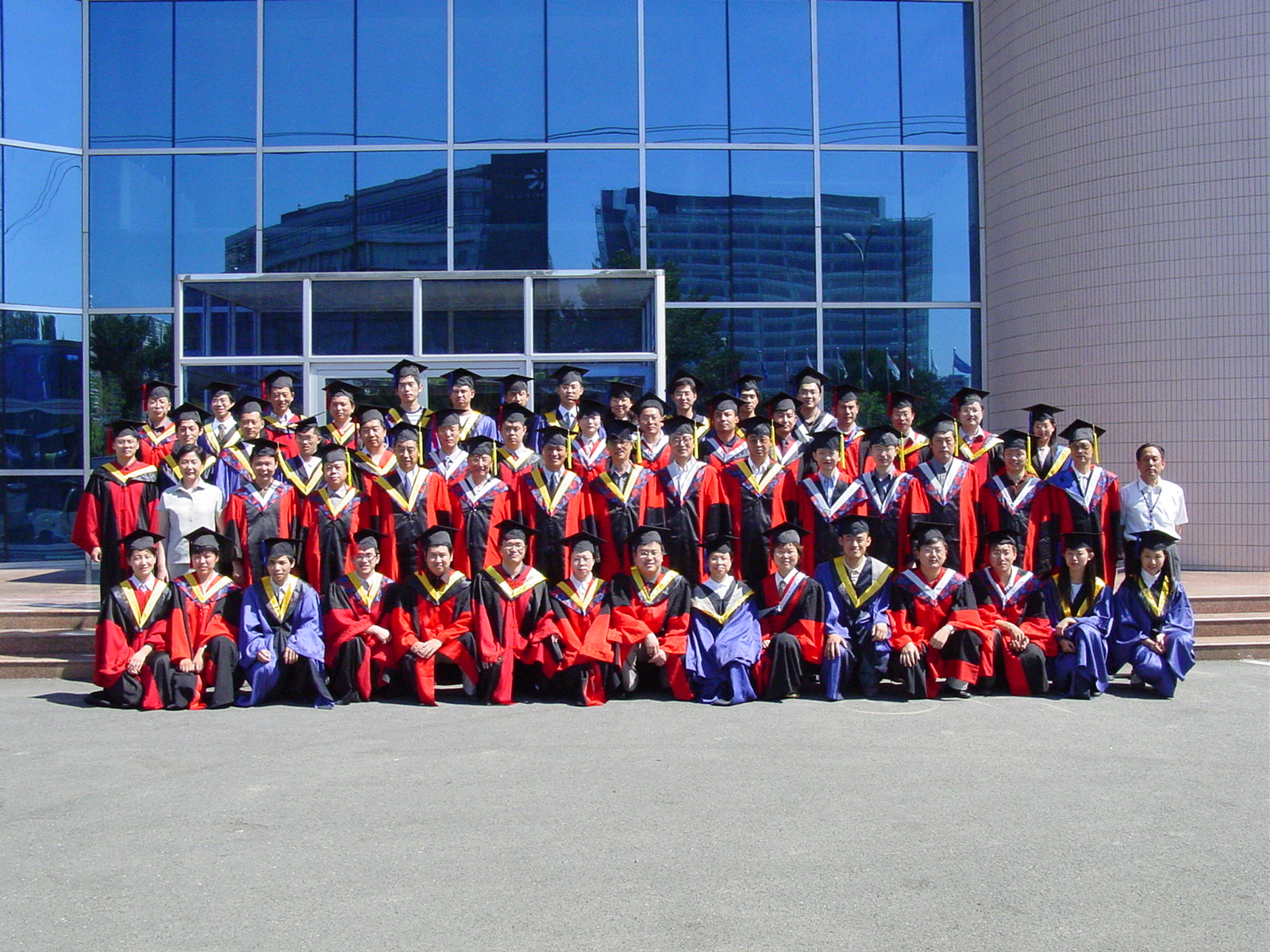 毕业典礼最后一项仪程在欢快有序的气氛中进行。田所长等主席台就座的领导为毕业生们颁发毕业证书。随后导师和毕业生们着导师服和学位服合影留念,有的学子高兴的和家人合影共享这一美好时刻。DSP楼前,声学所2004年毕业生齐聚在照相机前,频频留下永恒瞬间;学子们在灿烂的阳光下,兴奋的互相致意,向天空中高高的抛起了学位帽……