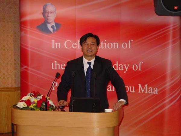 全国人大常委、全国人大法律委员会副主任委员,民盟中央副主席李重庵教授,全国政协委员、教科文卫体委员会副主任、中科院院士、民进中央副主席蔡睿贤,中国科协书记处书记宋南平,丹麦著名学者Per V.Bruel等嘉宾纷纷发表致辞,中国科学院副书记孙建国代为宣读了路甬祥院长的贺信。路院长在贺信中说,感谢马大猷院士为我国科技和教育事业所做出的重要贡献,并衷心祝愿马先生生日快乐,健康长寿,生活幸福。