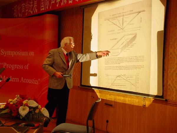 随后,丹麦著名学者Per V.Bruel、日本著名学者Fujisaki和英国著名学者Andrem Ball分别做了主题为“Acoustic Well Being”、“Melodic Features of Speech”和“Remote Monitoring of Acoustic Condition”的精彩报告,他们在报告中介绍了国外最新的声学研究进展情况,使广大听众受益匪浅。