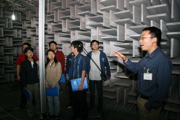 在DSP四层的展厅里,集中展示了声学所的发展历程和取得的科研成果。在声场声信息国家重点实验室,参观者通过聆听讲解员对展板的细致介绍和对试验设备现场观摩,对声波与物质的相互作用有了初步的了解,激发了同学们对声学研究的兴趣。超声检测实验室也制作了精美的展板,科研人员对广大同学的各种问题给予了耐心细致的解答。之后,在引导员的引领下,参观者又参观了基础声学实验室的混响实验室、半消声实验室和全消声实验室,在实验室中,参观者亲自体验了声音在不同实验室中的传播效果,引发了参观者的好奇心和对声学的无限兴趣,不少同学纷纷提问,都得到了讲解员的耐心解答,使他们对声学的了解更进了一步。中科信息实验室展示的音乐检索系统吸引了广大参观者的注意力,不少同学还亲自体验了一下,当看到自己仅仅哼唱十几秒后,歌曲的名称竟能准确的在电脑上显示出来的时候,同学们都惊叹不已。为配合此次活动,更好的为前来参观的广大青少年学生服务,声学所还在DSP大厅设立了研究生招生咨询处,广大工作者对同学们提出的有关招生方面的各种问题给予了耐心解答。