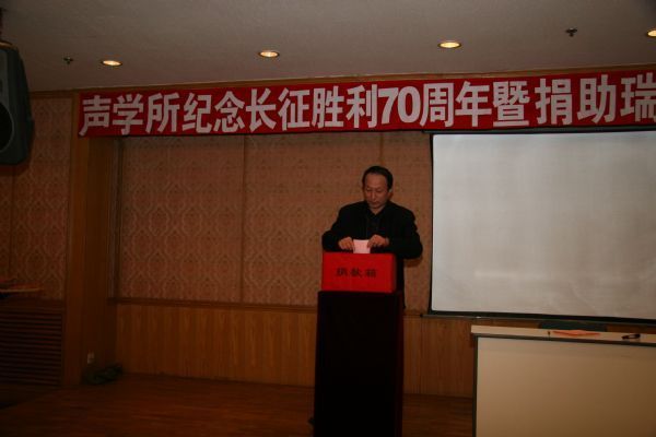 会上,所团委委员崔寒茵宣读了声学所党委、工会、团委、研究生会联合发起的“向江西瑞金凤岗长征小学捐赠倡议书”。倡议书号召全体共产党员、共青团员、广大职工积极行动起来,踊跃参加向革命老区长征小学的捐赠活动,以自己的实际行动,为老区献去一份爱心,以实际行动纪念红军长征胜利70周年,弘扬长征精神,关爱红都教育。