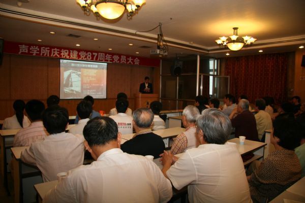 7月1日上午,声学所在DSP大楼四层多功能厅举行党员大会,隆重纪念建党87周年。全所200多名在职、学生和离退休党员参加了大会。党委委员马晓川主持大会。