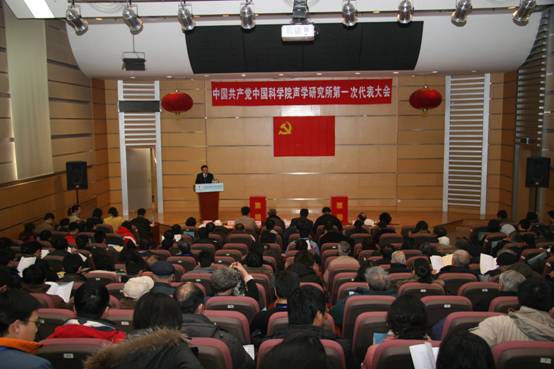 2010年1月22日下午,在雄壮的国歌声中,中国共产党中国科学院声学研究所第一次代表大会隆重召开。大会听取和审议了上届党委和纪委的工作报告,选举产生了新一届中国共产党中国科学院声学研究所委员会和纪律检查委员会。