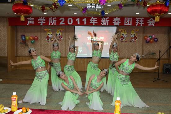 1月21日下午,声学所在DSP大楼四层多功能厅成功举办了热烈而祥和的2011年新春团拜会,精彩的节目、趣味的游戏、丰富的奖品,精彩纷呈,令人目不暇接,多功能厅处处弥漫着欢声笑语,沉浸在节日的喜庆氛围中。所长王小民、党委书记张春华、副所长居琦、倪宏、马晓川、李风华等领导与近400名职工、学生欢聚一堂,辞旧迎新,共庆新春佳节。
