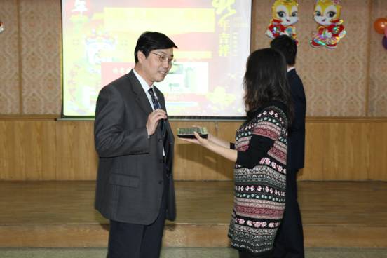 下午2点,团拜会正式开始。大屏幕上所领导和所内各单位同志们的拜年和祝福场景俨然给人以中央电视台春节联欢晚会的感觉,令人一下子找到了过年的感觉。由退休职工带来的热烈喜庆、节奏欢快的开场舞《手帕舞》拉开了团拜会的序幕。他们虽已年逾古稀,但舞技依然精湛,赢得了现场观众热烈的掌声。