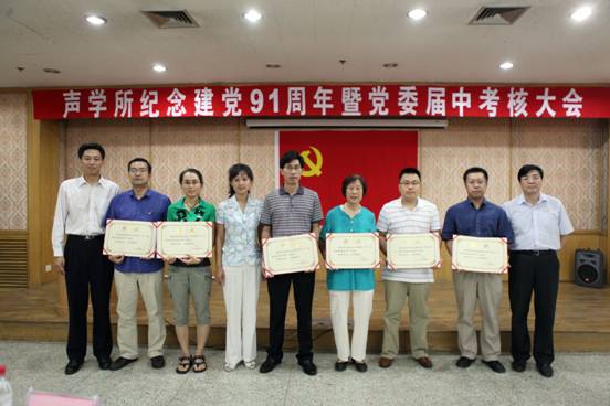 2012年7月2日,声学所在多功能厅举行纪念建党91周年暨党委届中考核大会。党委书记张春华,党委委员王小民所长、马晓川副所长、孙长瑜、李双田、王秀明、李淑秋、郭良浩等,以及百余名在职、离退休和学生党员参加了大会。京区党委副书记王秀琴、组织部部长杨旭等考核组一行出席了会议。