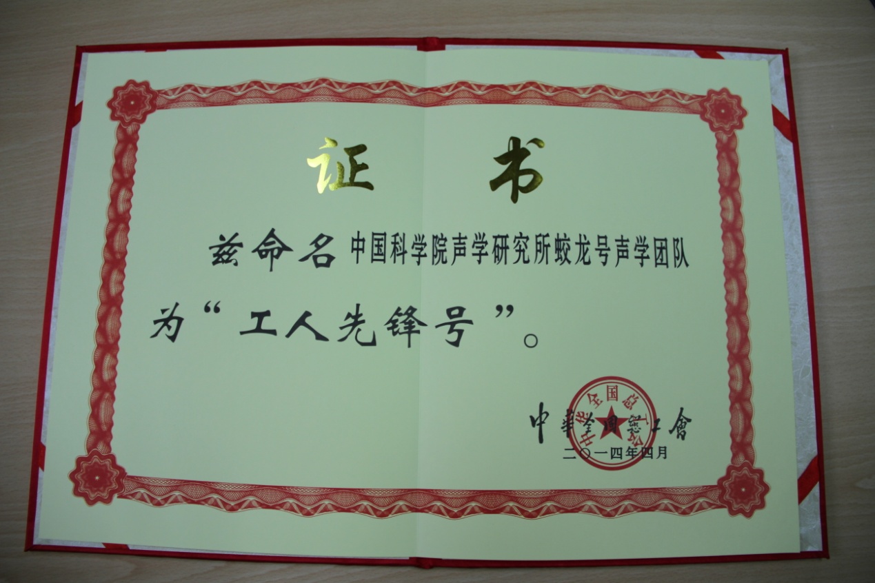 近日,中华全国总工会决定授予中国科学院声学研究所全国五一劳动奖状、声学所“蛟龙号声学团队”全国工人先锋号、朱敏同志全国五一劳动奖章荣誉称号。
