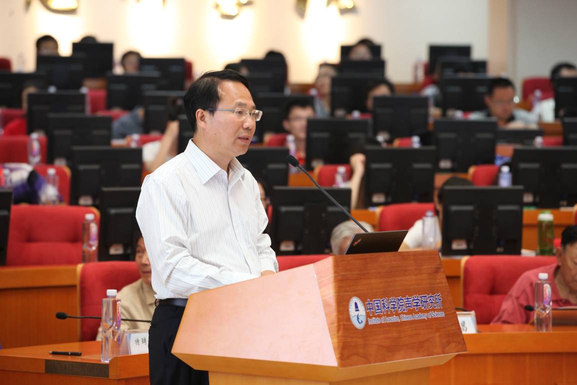 王小民所长致开幕词,他深情地回顾了声学所半个世纪的发展历程,声学所在汪德昭、马大猷和应崇福等开拓者的引领下,历经创业、艰难岁月、恢复、探索以及快速发展等时期,几代声学所人坚守梦想、理想与信仰,始终肩负着时代的责任与使命,为满足国家重大战略需求做出了应有的贡献。他要求声学所人务必戒骄戒躁,谦虚谨慎,务必清晰地认识到我们的工作离党和国家与人民的期待还有差距。