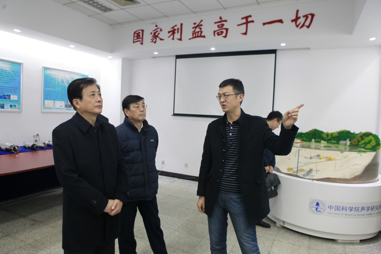 11月22日下午,中国科学院党组副书记、副院长刘伟平调研中科院声学研究所,先后实地调研声学所中科院水声环境特性重点实验室、声场声信息国家重点实验室、中科院噪声与振动重点实验室、国家网络新媒体工程技术研究中心、中科院语言声学与内容理解重点实验室等研究单元的主要科研工作进展,听取王小民所长做的声学所总体情况、“十二五”主要科技创新成果、创新研究院建设情况、“十三五”规划推进情况和党的建设等工作报告,并与研究所领导班子成员、科研和管理骨干、党支部书记等围绕学习宣传贯彻党的十九大精神,加快实现“三个面向”、“四个率先”目标任务进行座谈交流,张春华书记主持座谈会。