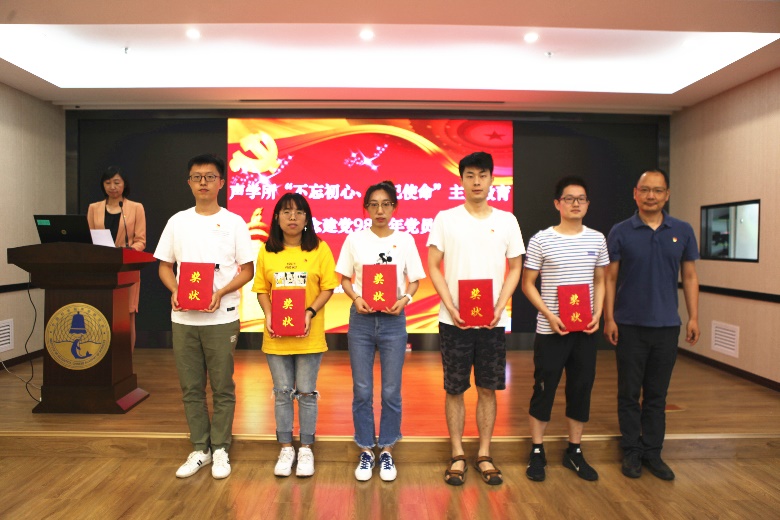 会议还对声学所2018-2019年度先进党支部、优秀共产党员以及先进团支部、优秀团干部、优秀团员进行了表彰。张春华书记和李风华副所长分别为获奖单位及个人颁发了荣誉证书和奖杯。