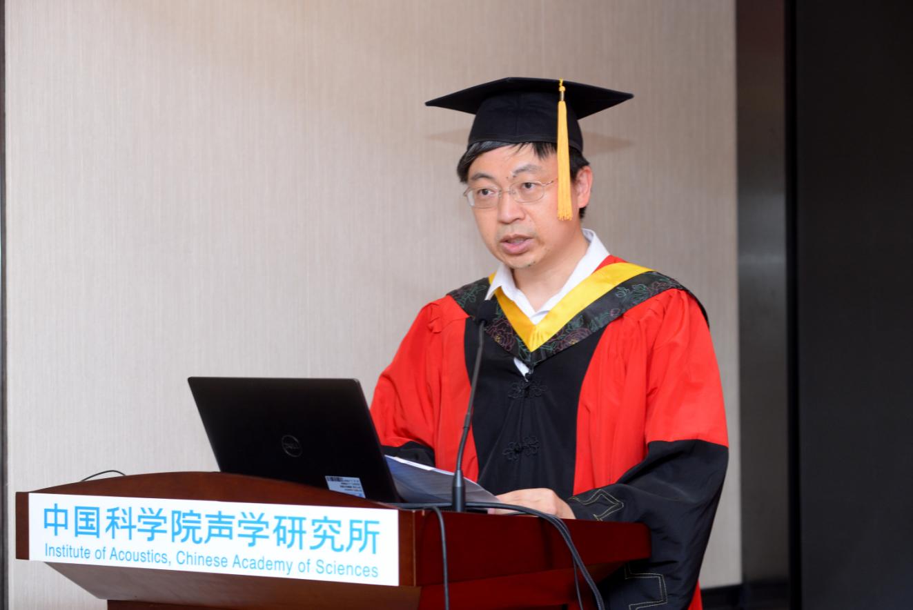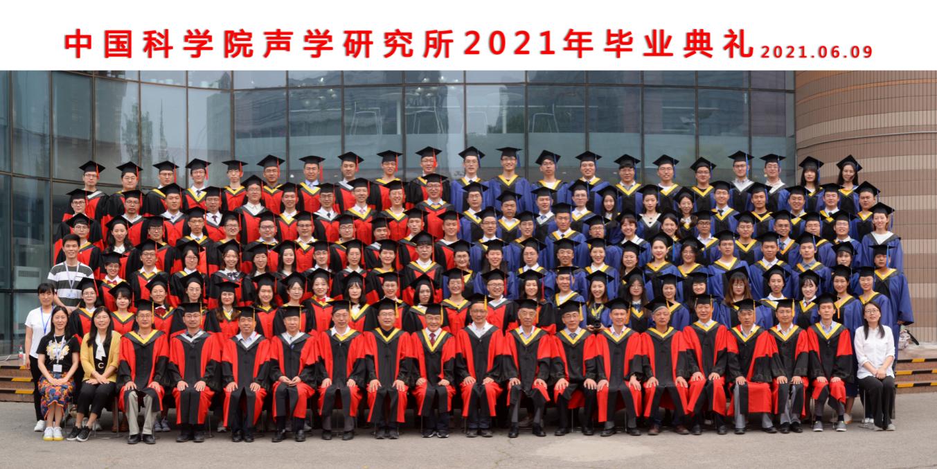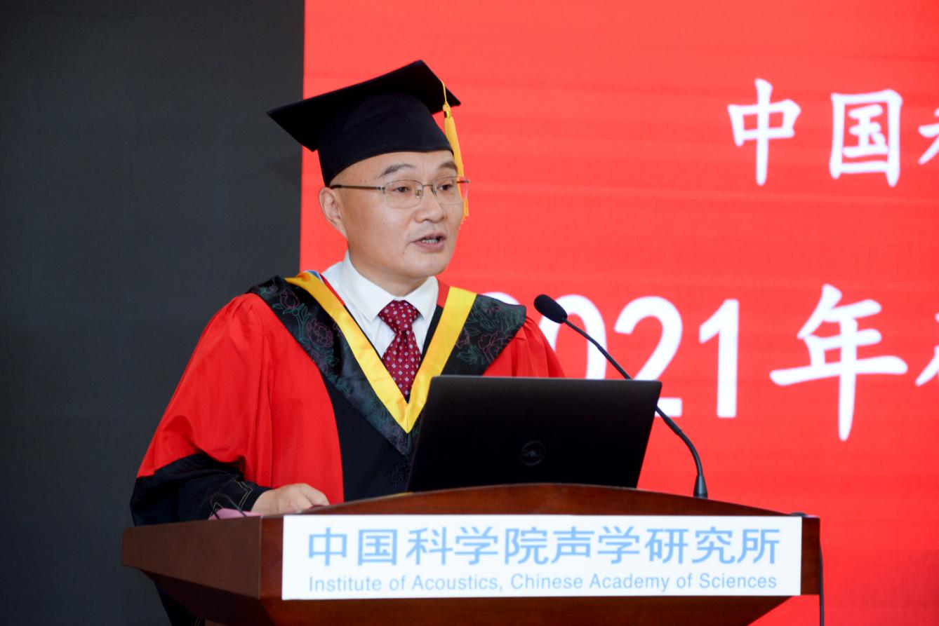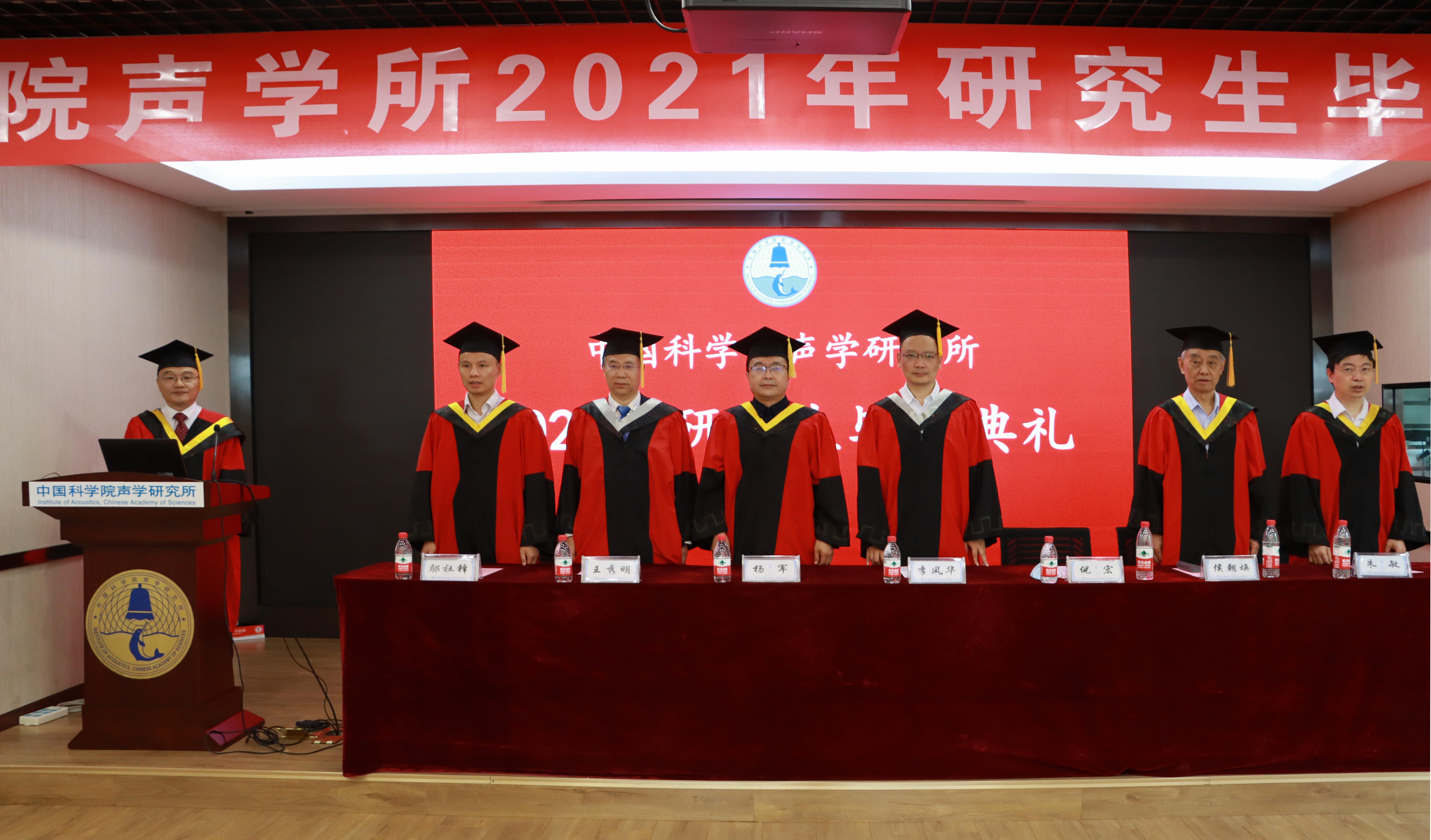 2021年6月9日,声学所2021届研究生毕业典礼在DSP四楼多功能厅隆重举行。学位评定委员会主席、所长李风华研究员,学位评定委员会副主席、党委书记倪宏研究员,学位评定委员会委员、副所长杨军研究员,侯朝焕院士、王秀明研究员、朱敏研究员和鄢社锋研究员等多位导师代表,人力资源部相关人员,2021届毕业生及家属齐聚一堂,共同参与了这一盛典。