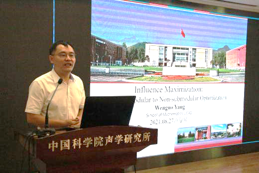 潘教峰作《新科技革命与产业变革的五个趋势》的报告;杨军受程建春委托作《声学学科现状以及未来发展趋势——兼介绍“现代声学科学与技术丛书”》的报告;杨文国作 Influence Maximization: from Submodular to Non-Submodular Optimization 的报告;朱军作《深度学习的对抗攻击与防御》的报告。大会报告内容丰富多彩,涉及新一轮国际科技革命和产业变革的发展趋势,声学领域各学科分支的研究现状、发展及挑战,数学领域的最大影响力问题的优化以及人工智能领域的深度学习对抗攻击与防御等多个热点问题。