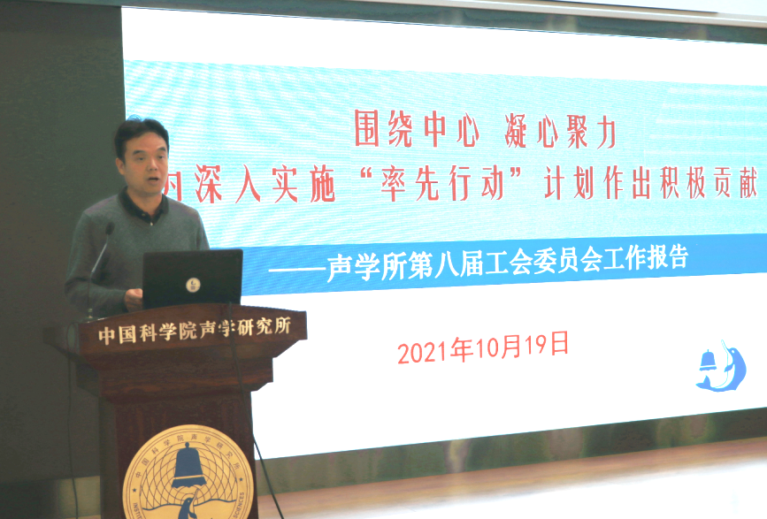 2021年10月19日,声学所第九届工会代表大会第一次会议在DSP多功能厅召开。所长李风华,党委书记、副所长倪宏,副所长李明庚、杨军,第八届工会主席林伟军及与会代表40余人参加。会议由第八届工会常务副主席周秀霞主持。