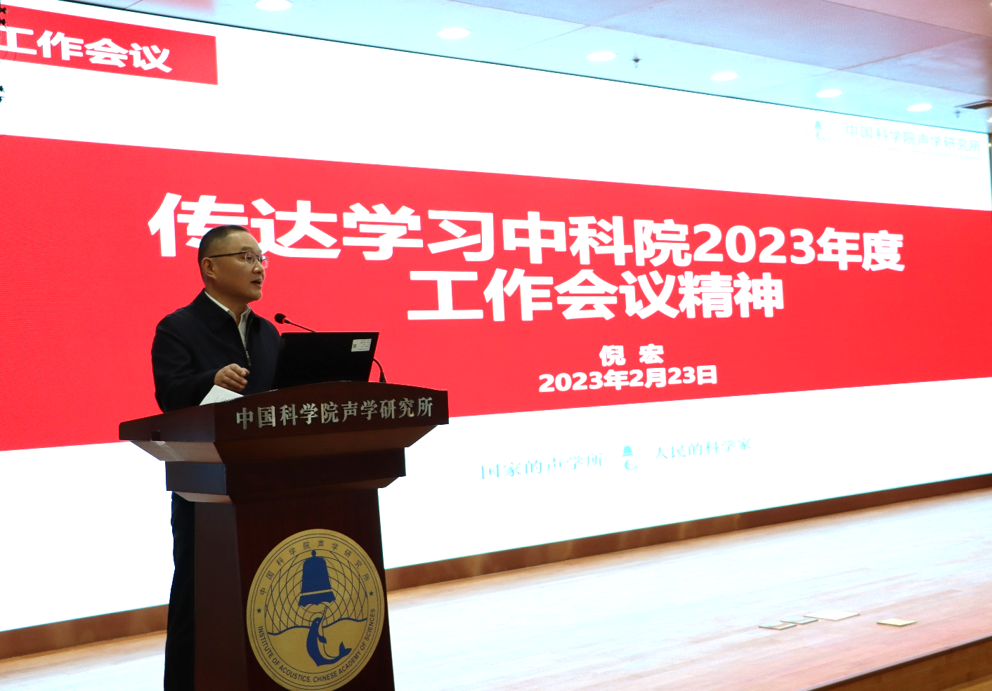 2023年2月23日至24日,中国科学院声学研究所在京召开主题为“攻关2023”的年度工作会议。声学所所长李风华、党委书记兼副所长倪宏、副所长李明庚、党委副书记兼纪委书记李浩然、副所长杨军,声学所党委委员、纪委委员、学术委员会委员、首席科学家、职代会正副主席,声学所各研究室正副主任、处级以上干部、三个研究站站领导、各党总支(支部)书记等80余人参加会议。张仁和、侯朝焕两位院士应邀出席会议。所内六级以上职员、专业技术等级副高级以上人员、职代会职工代表140余人参加了23日上午的会议。
