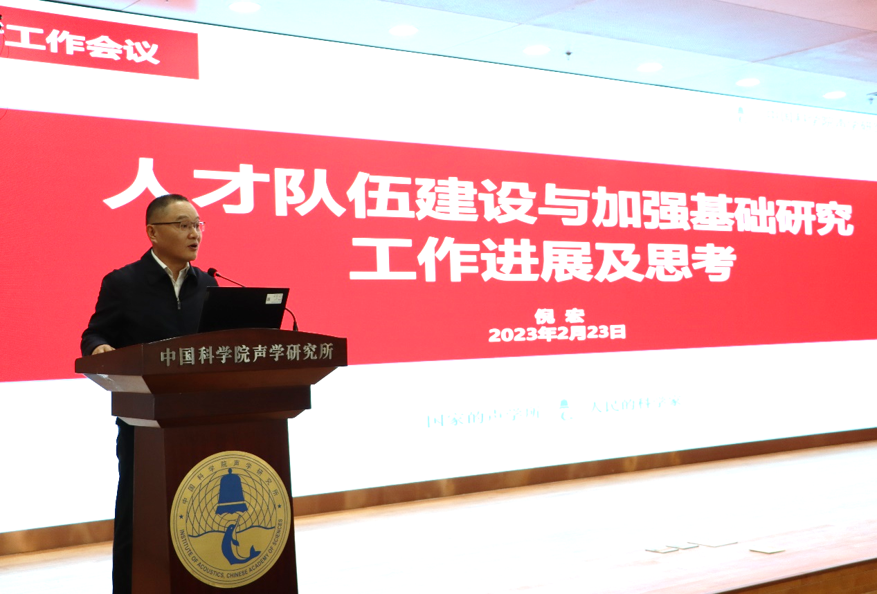 倪宏作《人才队伍建设与加强基础研究工作进展及思考》报告,分析总结了声学所的人才队伍建设、基础研究工作的现状与存在问题,详细介绍了声学所“十四五”人力资源发展规划、基础研究的相关工作部署及下一阶段工作重点。