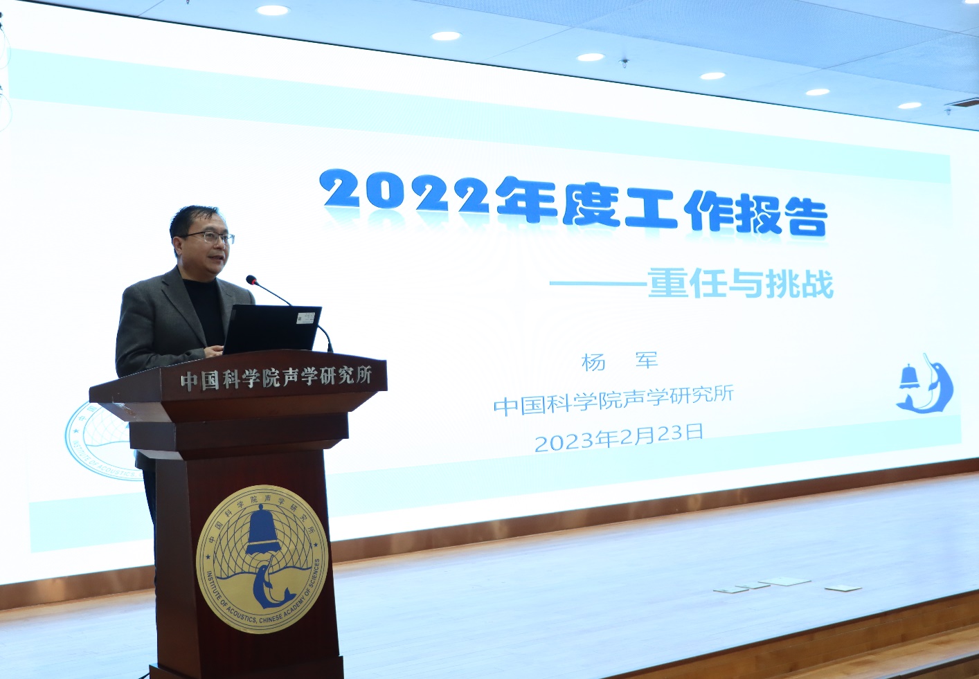 李风华作总体工作报告,题为《仰望星空 脚踏实地 推动声学所创新发展》。报告指出,2022年,声学所以“担当2022”为工作主题,在全所同志的共同努力下,克服困难,各项工作取得了卓有成效的进展。他结合党的二十大精神对科技提出的新要求,提出了声学所未来发展思路:要以“充分体现国家意志、有效满足国家需求、代表国家最高水平”为标准,按照中科院“强基础、抓攻关、聚人才、促改革”的主线,以昂扬奋进的精神状态和勤勉务实的工作作风,勠力同心、迎难而上,着力开展原创性引领性科技攻关,持续产出重大成果、共创声学所改革发展的新局面。