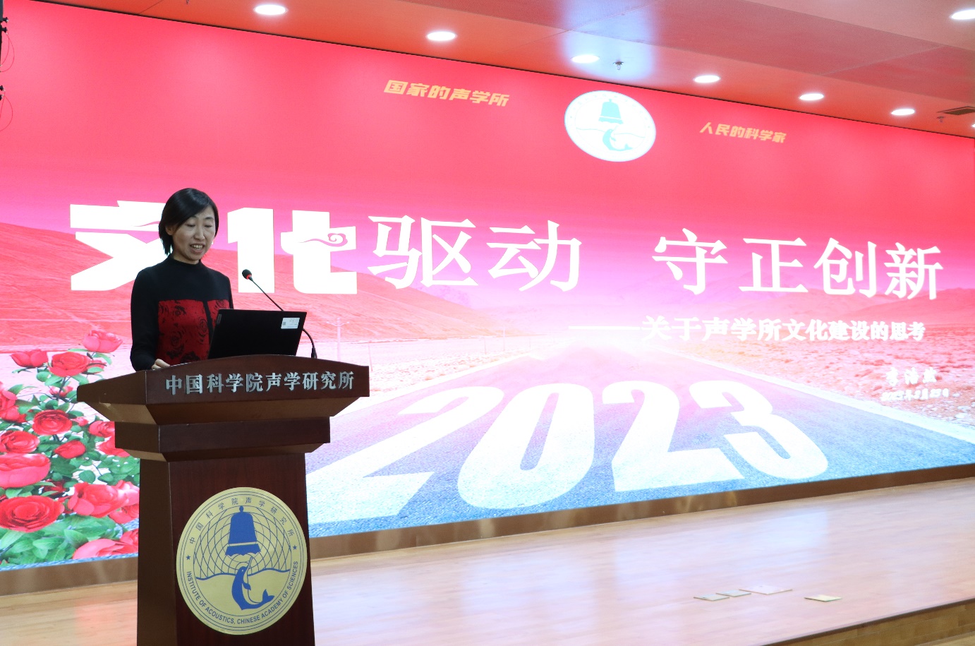 李浩然作《文化驱动 守正创新——关于声学所文化建设的思考》报告,回顾了声学所文化建设发展历史,结合党的二十大对文化建设的新部署,介绍了声学所“十四五”文化建设实施方案和落实 “文化建设二十条”的具体举措。