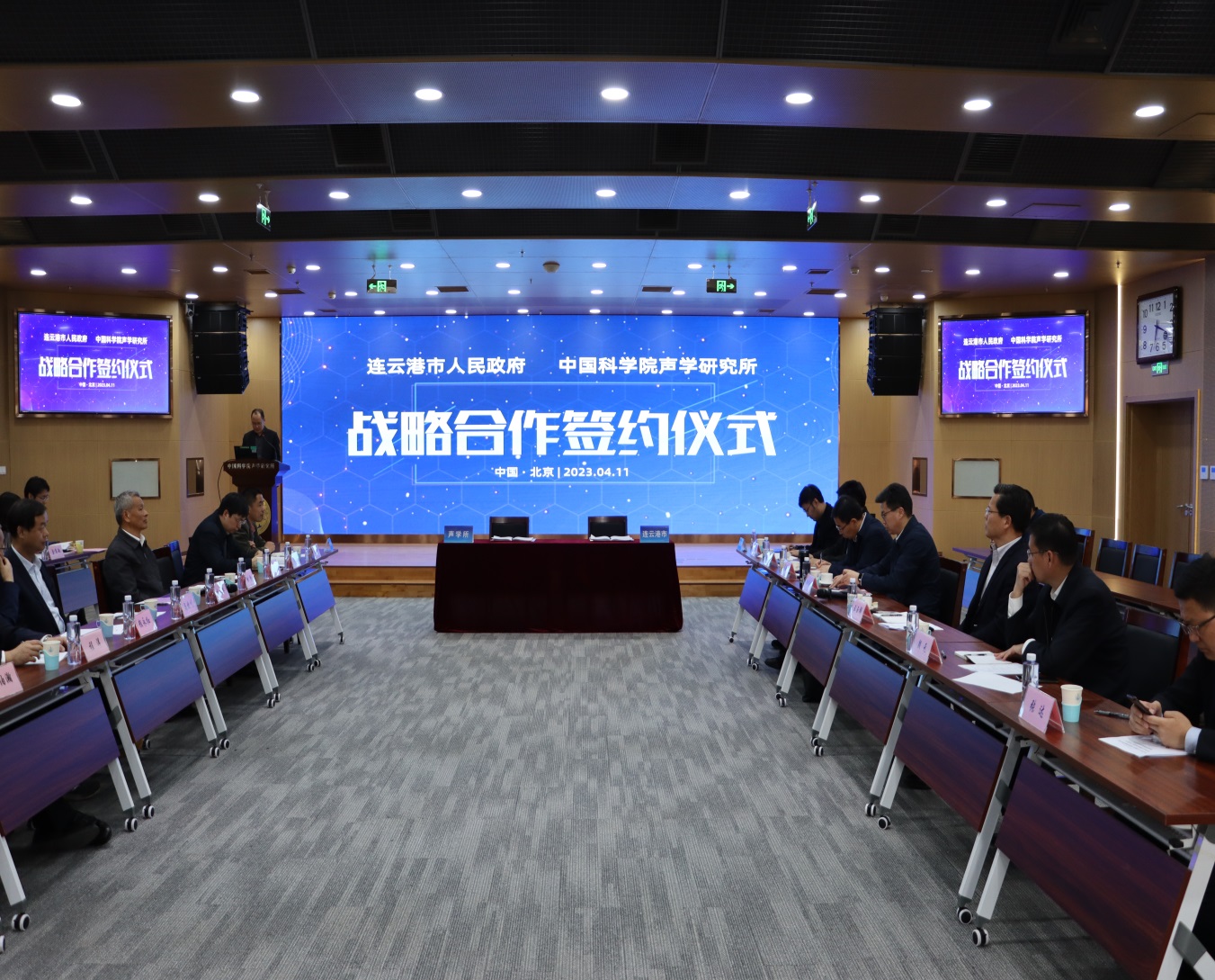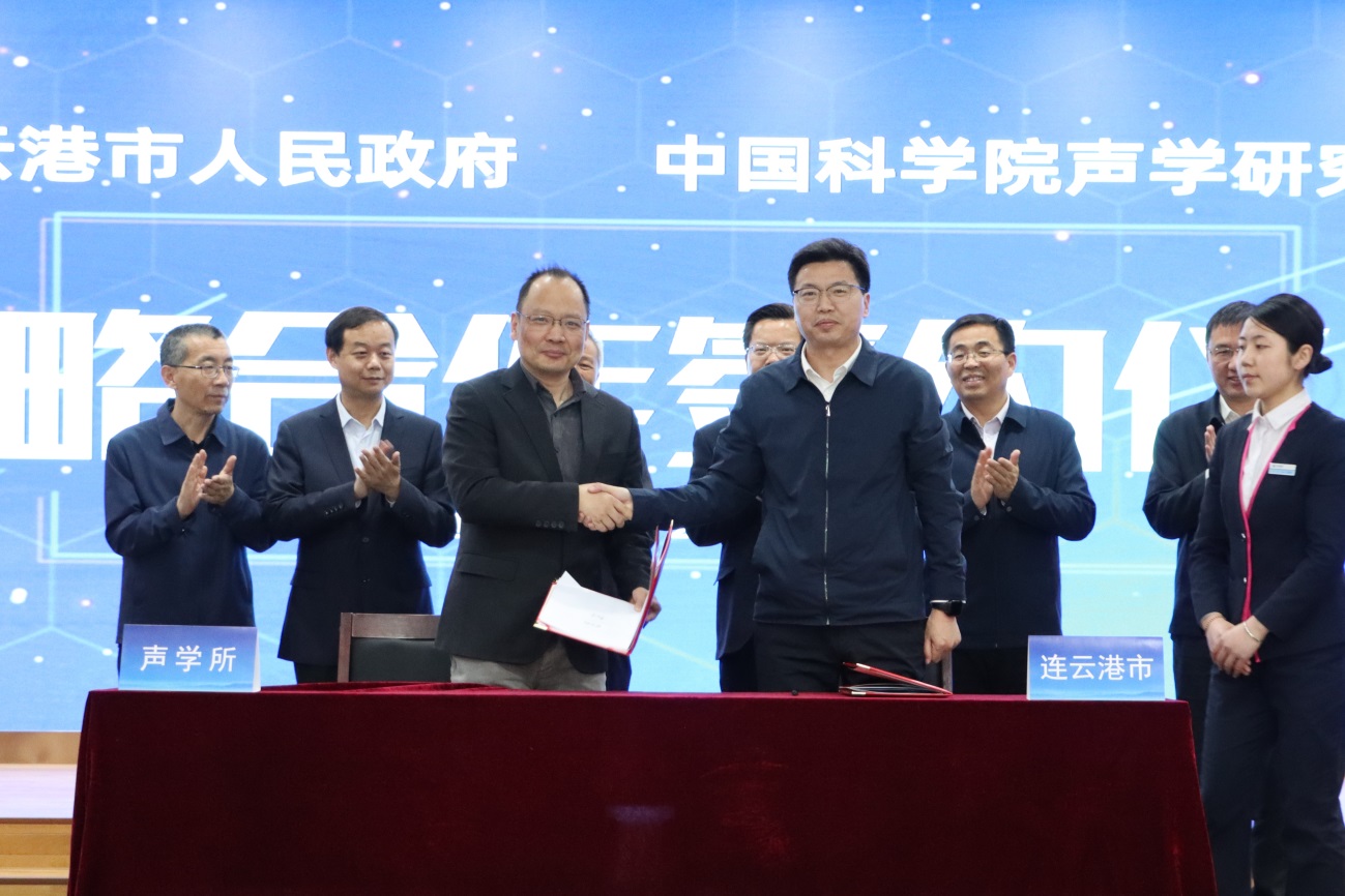 4月11日,中国科学院声学研究所与连云港市人民政府在北京正式签订“智慧海洋工程装备研发及产业化项目”战略合作框架协议。声学所所长李风华、连云港市政府副市长张家炯出席签约仪式并讲话。声学所田静研究员、马晓川研究员、首席科学家颜永红研究员,连云港开发区区党工委副书记、常务副主任王玉祥,连云港开发区党工委委员、管委会副主任殷元等出席签约仪式。连云港市科技局相关负责同志,声学所智慧海洋工程装备研发项目组成员参加了签约活动。