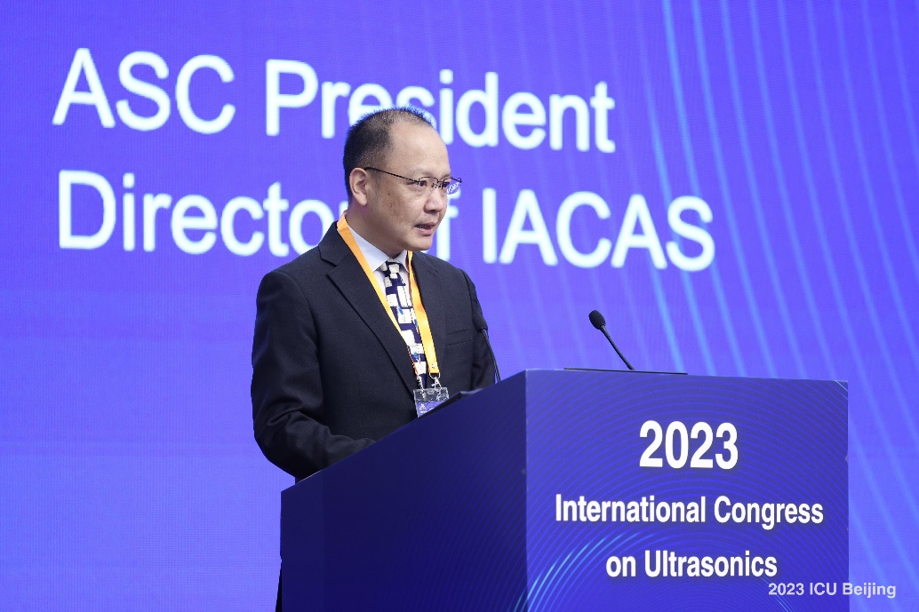 中国科学院声学研究所首席科学家、国际超声大会主席王秀明主持开幕式
