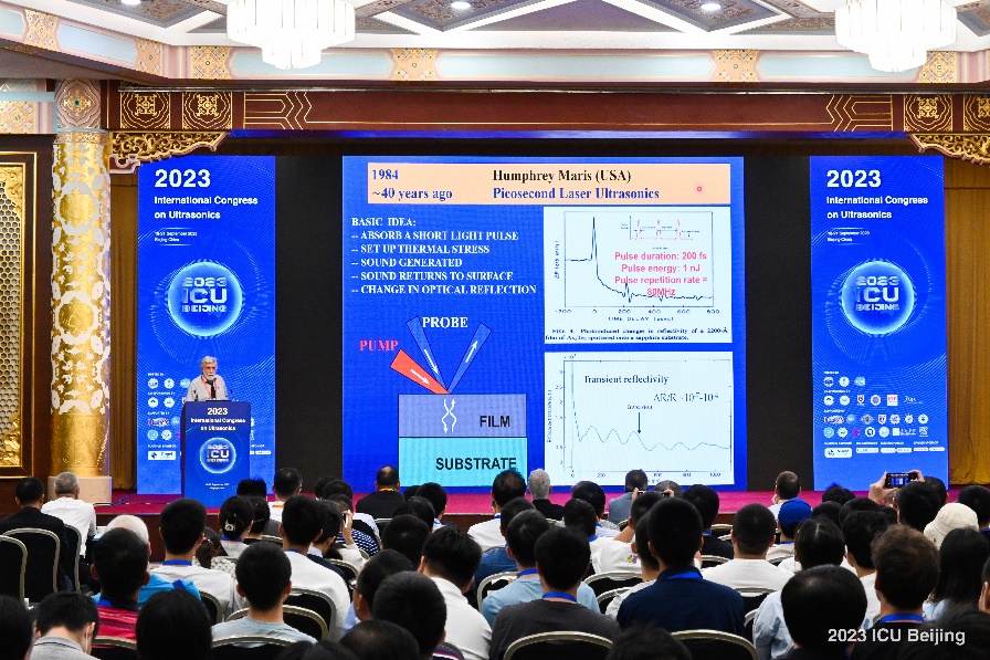 2023年9月18日至21日,2023年国际超声大会在北京友谊宾馆隆重召开。中国科学院声学研究所首席科学家王秀明研究员作为本次大会主席主持大会开幕式,声学所所长、中国声学学会理事长李风华研究员致开幕词,比利时Koen Van Den Abeele教授作为国际超声大会理事长致辞,中国科学院声学研究所和中国声学学会的部分领导出席并参加会议。