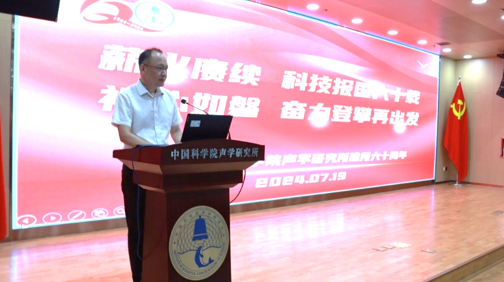 倪宏在总结讲话中指出,今天的大会带领大家共同回顾了六十年的光荣奋斗史,强化了创新求实的优秀基因,接续了科技报国的奉献精神,激励我们踔厉奋发、昂首前行。他强调,刚刚闭幕的二十届三中全会吹响了新征程上进一步全面深化改革、推进中国式现代化的“冲锋号”,也是我们高质量发展新的起跑线。他号召大家传承和弘扬科学家精神,努力加快抢占科技制高点,奋斗担当,攻关登攀,共同创造声学所更加灿烂辉煌的明天!