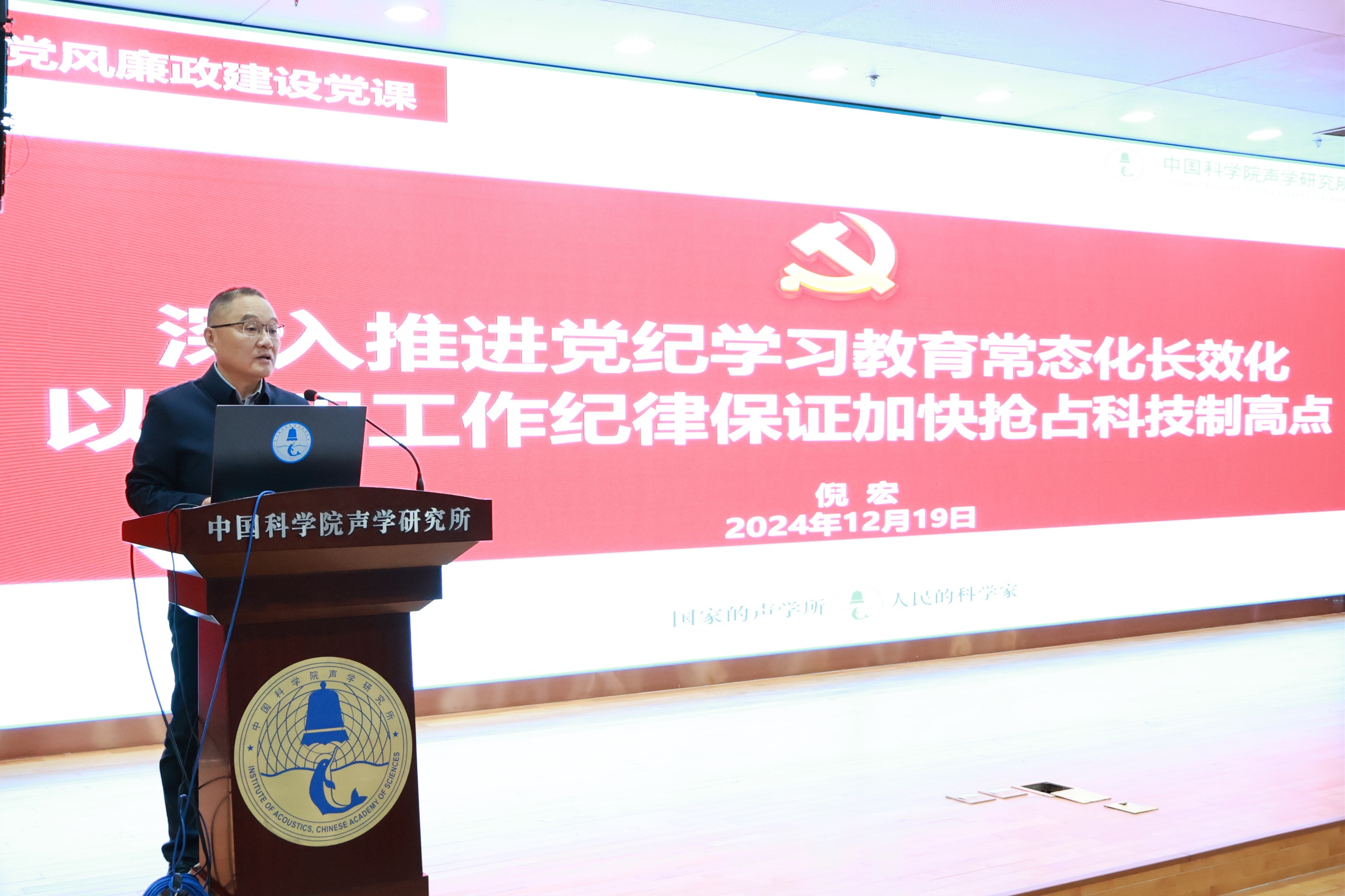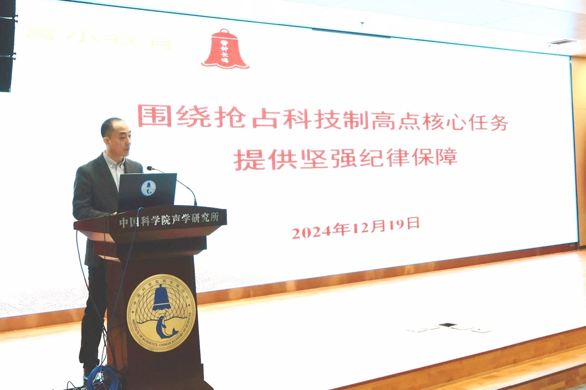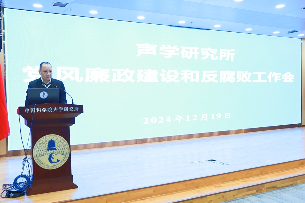 2024年12月19日,声学所召开2024年度党风廉政建设和反腐败工作会议。党委书记倪宏作党风廉政建设专题党课,所长李风华作廉洁从业专题报告,所纪委书记王雷做警示教育并主持会议。