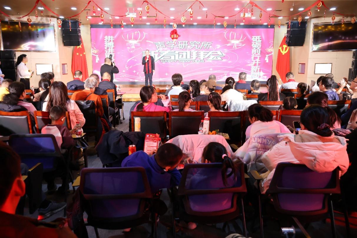 团拜会演出特色鲜明、新颖别致,生动再现了声学所过去一年高质量发展的丰硕成果,彰显了声学所人凝心聚力、攻坚克难、奋力拼搏的精神风貌。新的一年,让我们以更饱满的热情、更昂扬的斗志,砥砺前行,共同谱写声学所更加美好的明天!