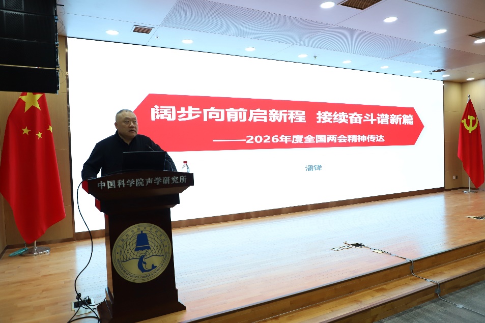 会议要求,全所党员干部和职工要提高政治站位、深化思想认识,认真学习领会习近平总书记重要讲话和全国两会精神,切实把思想和行动统一到党中央决策部署上来,紧紧围绕抢占科技制高点核心任务,对标对表完成研究所“十五五”规划编制,积极建议承担和组织实施国家重大科技任务,在主攻方向和若干声学前沿交叉领域形成突破性态势。要按照所工作会明确的“砥砺2026”工作主题和年度工作要点,细化任务分工、明确节点目标,压紧压实责任,以钉钉子精神不折不扣推动各项重点工作落到实处、取得实效。要牢固树立和践行正确政绩观,将正确政绩观要求贯彻落实到改革创新发展各项工作中,以高度的政治责任感完成巡视整改,切实将学习教育成效、巡视整改成效转化为抢占科技制高点的强大动力。